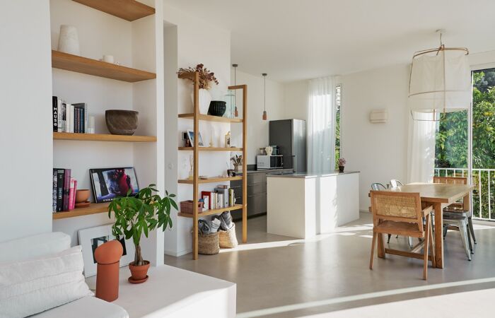 • Prestations haut de gamme : Plancher chauffant/rafraîchissant, climatisation gainable, sols en béton ciré, baies vitrées Technal, électricité / plomberie neuves.