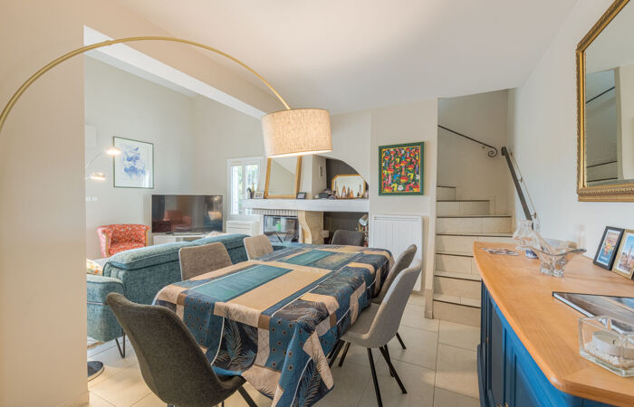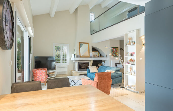Située dans un domaine privé au coeur des golfs, belle villa entièrement de plain pied et rénovée avec goût comprenant 3/4 chambres plus une mezzanine pouvant servir de chambre d'appoint ou de bureau, un séjour cathédral avec cuisine ouverte toute équipée, sortant sur une belle terrasse plein sud en partie protégée par une pergola bioclimatique, 2 salles d'eau, 2 WC et une buanderie. De nombreux rangements.