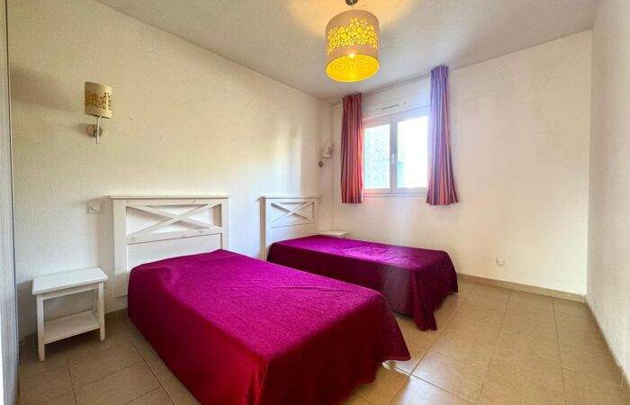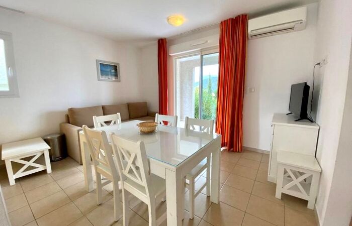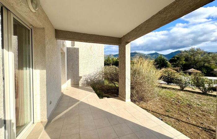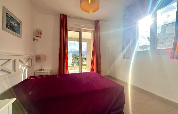 OLETTA (CORSE) - Proche des plages et au sein d'une résidence de tourisme 3 étoiles avec piscine et terrains de jeux, 3P au calme absolu de 44,62 m² en rez-de-jardin comprenant un séjour avec cuisine américaine équipée donnant sur une terrasse de 15 m², 2 chambres avec placards, une salle d'eau et un WC indépendant. Climatisation. Double vitrage. Nombreux rangements. Vendu meublé et équipé. Exposition Sud/Ouest.
