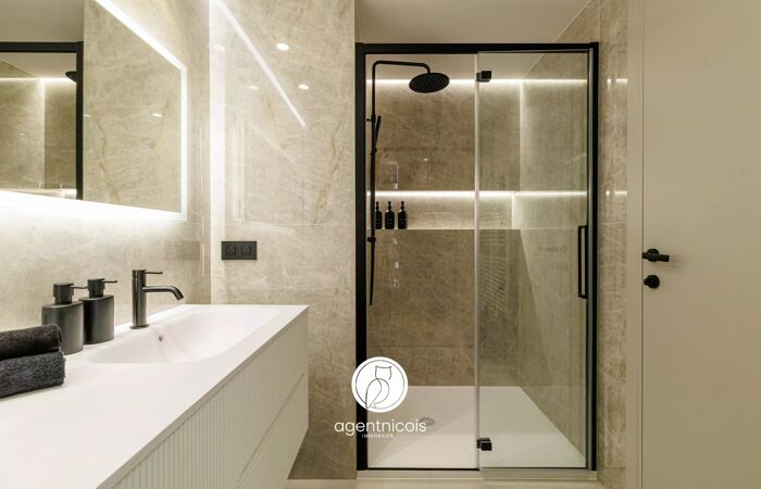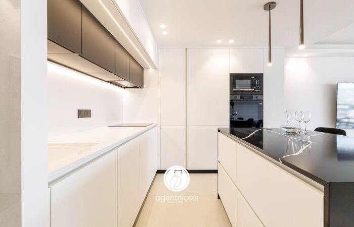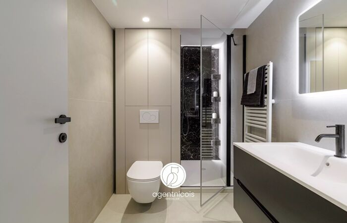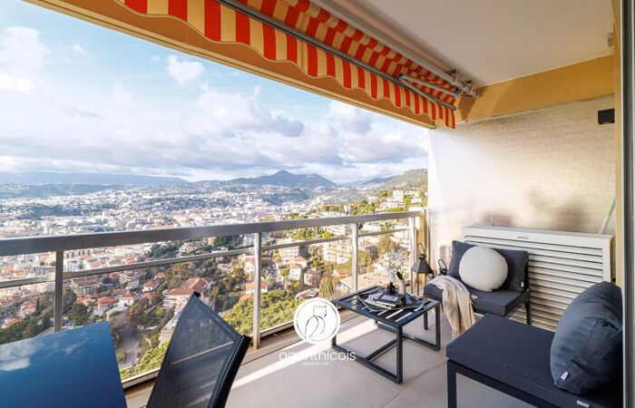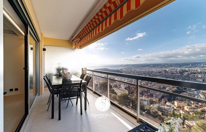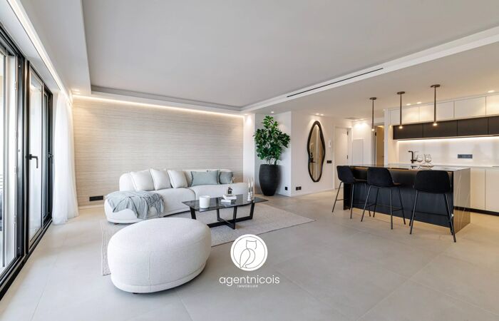 NICE // MONT-BORON : 3 PIECES - DERNIER ETAGE - VUE MER - TERRASSE NICE // MONT-BORON : 3 PIECES - DERNIER ETAGE - VUE MER - TERRASSE Situé au 8ᵉ et dernier étage d’une résidence de standing avec gardien, cet appartement de 84 m² offre une vue panoramique sur la mer et la ville de Nice. Le séjour, lumineux , s’ouvre sur une cuisine américaine équipée avec îlot central et donne accès à une terrasse de 11 m² . Les prestations sont haut de gamme, avec boiseries raffinées et rangements sur mesure. L’espace nuit se compose de deux chambres, dont une suite, chacune disposant de sa salle d’eau avec douche à l’italienne et WC. Un garage box fermé ainsi qu’une cave complètent ce bien. Aucune procédure en cours (articles 29-1A/29-1 loi 65-557. L.615-6 du CCH) Bien en copropriété: Oui Nombre de lots de copropriété : 175 Charges annuelles de copropriété : 1036euros Consommation énergétiques : 201 // kWhep/m2.an Émission de gaz à effet de serre : 5 // kgeqCO2/m2.an Les informations sur les risques auxquels ce bien est exposé sont disponibles sur le site Géorisques : georisques.gouv.fr Les honoraires d'agence seront intégralement à la charge du vendeur. La présente annonce immobilière a été rédigée sous la responsabilité éditoriale de l'agent commercial mandaté pour la vente de ce bien.