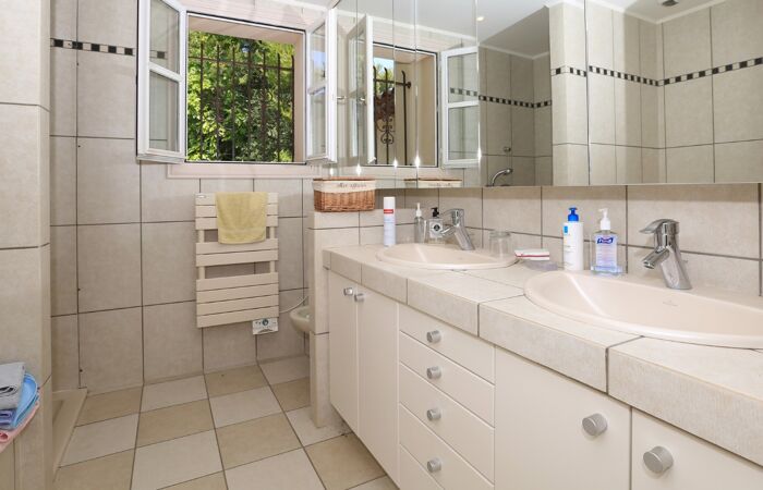 Implantée sur un magnifique terrain arboré de 3.500 m², la propriété se compose d'une villa principale d'environ 230 m², lumineuse et parfaitement exposée plein Sud, et d'une bâtisse secondaire de 120 m² sur 3 niveaux en bordure de parcelle.