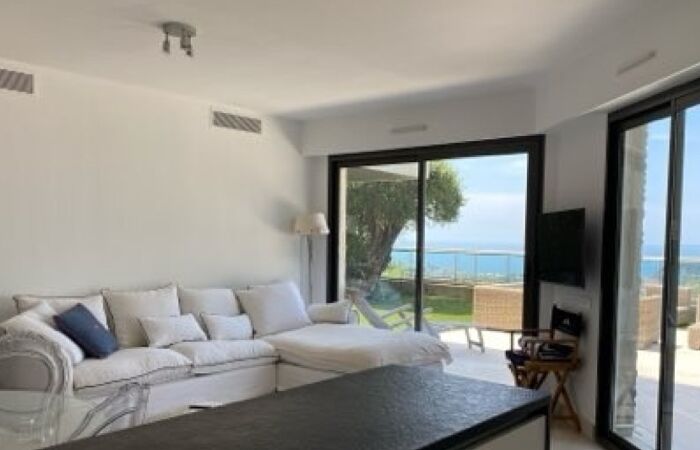 Une terrasse, un jardin avec vue mer et montagnes ainsi qu'un garage fermé en sous sol viennent compléter cette location.