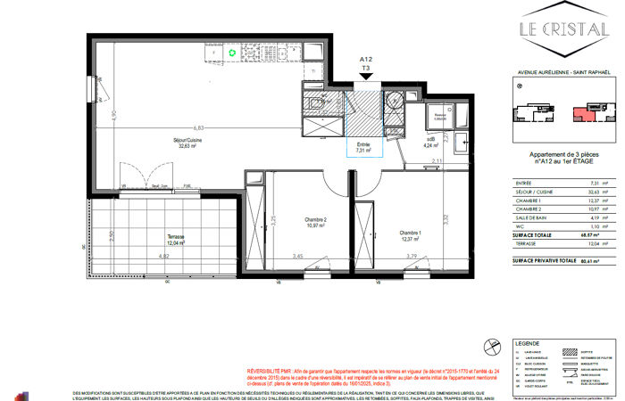 - Surface habitable : 69 m²