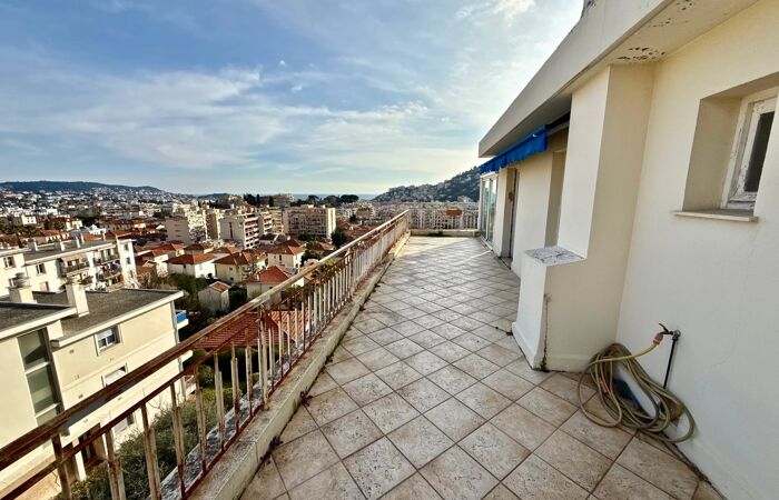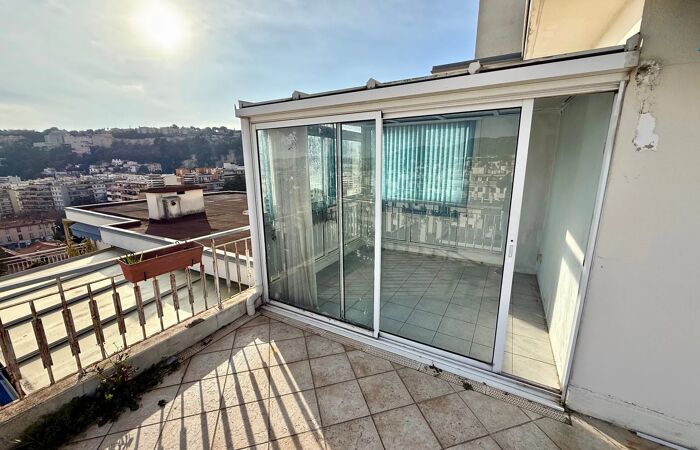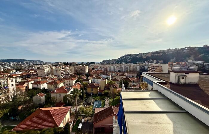 2/3 PIECES DERNIER ETAGE / NICE NORD Nous vous proposons cette superbe demi-villa sur le toit, située au dernier étage d’une résidence bien entretue avec ascenseur, au sein d’une impasse calme, résidentielle et verdoyante, offrant un cadre de vie paisible et privilégié. D’une surface habitable de 68 m², cet appartement 2/3 pièces transformable séduit par son beau potentiel d’aménagement et ses espaces extérieurs exceptionnels : une vaste terrasse de 31 m², idéale pour profiter des beaux jours, ainsi qu’une véranda de 8 m², apportant un espace de vie supplémentaire baigné de lumière. Il est dans un environnement calme et il bénéficie d'une vue mer après la vue sur toute la ville de Nice L’intérieur se compose actuellement d’un séjour spacieux et lumineux, d’une chambre confortable, d’une cuisine fonctionnelle et d’une salle de bains. La configuration permet facilement la création d’une seconde chambre ou d’un espace bureau, selon vos besoins. Grâce à ses larges ouvertures en double vitrage, l’appartement bénéficie d’une excellente luminosité et d’un ensoleillement optimal tout au long de la journée. Son emplacement constitue un véritable atout : environnement résidentiel recherché, à proximité des commerces, écoles et transports, tout en conservant un accès rapide aux principaux axes routiers. Un grand garage fermé ainsi qu’une cave viennent compléter ce bien rare sur le secteur.