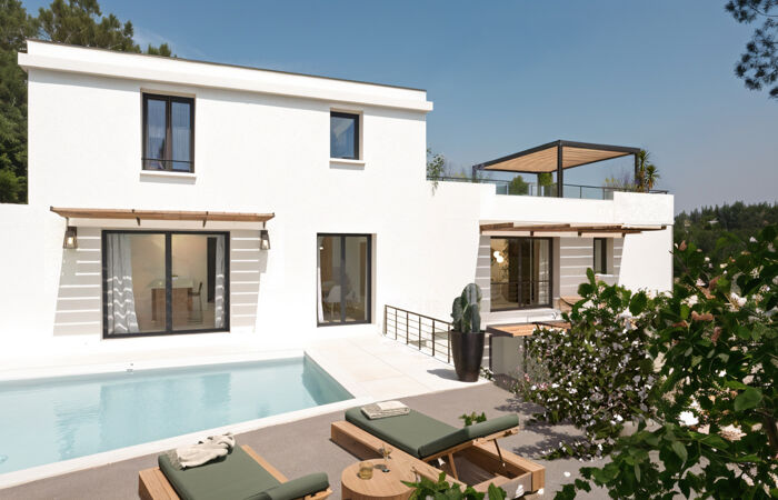 Boulouris, À vendre beau terrain à bâtir d'une surface de 805 m², idéalement situé dans un environnement calme et agréable. Le terrain est vendu avec un permis de construire purgé de tout recours pour une villa de 173 m² hab, offrant un projet sécurisé et un gain de temps considérable pour démarrer rapidement les travaux.