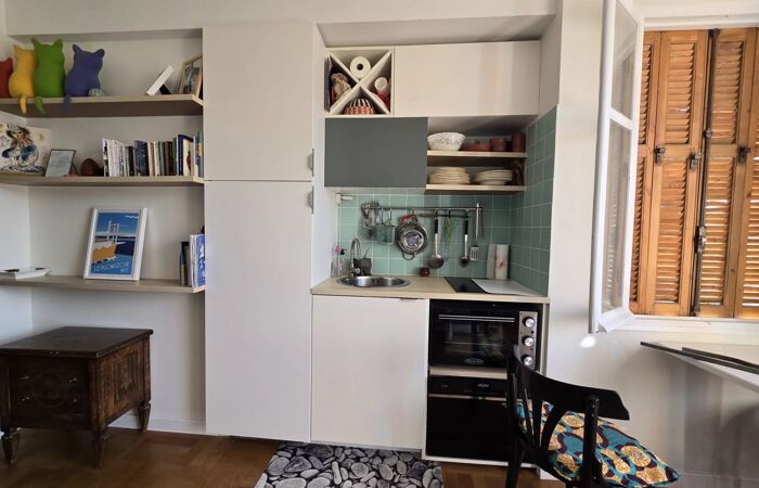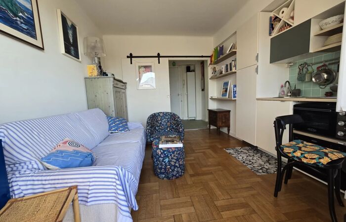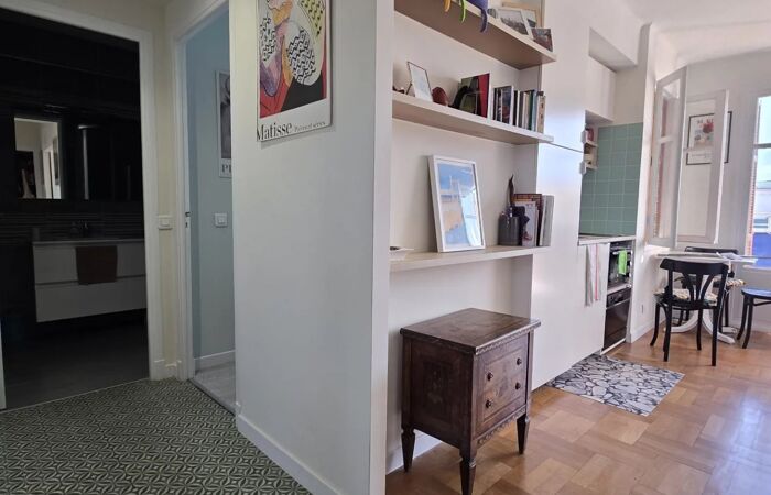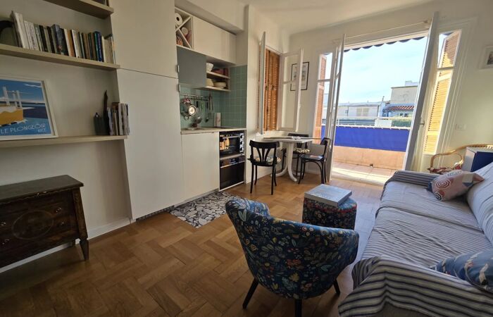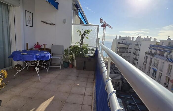 EXCLUSIVITE Nice -PROMENADE des ANGLAIS/RUE DE FRANCE EXCLUSIVITE' UNIQUE dans le secteur Très charmant APPARTEMENT composé d'une entrée, une chambre et un séjour avec cuisine équipée, salle des bains. TERRASSE de 15 m²avec vue mer latérale.Cave. Entièrement rénové par un architecte.Un investissement sur!