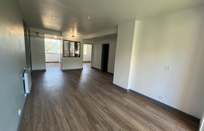 Appartement de 3 pièces principales de 60 m2. Vide. Comprenant un séjour de 22,50 m2, une cuisine aménagée et semi-équipée (plaque de cuisson + hotte aspirante + four + lave vaisselle + lave linge), une arrière cuisine, un couloir, 2 chambres de 11,2 m2 avec placard, une salle d'eau et un WC individuel.