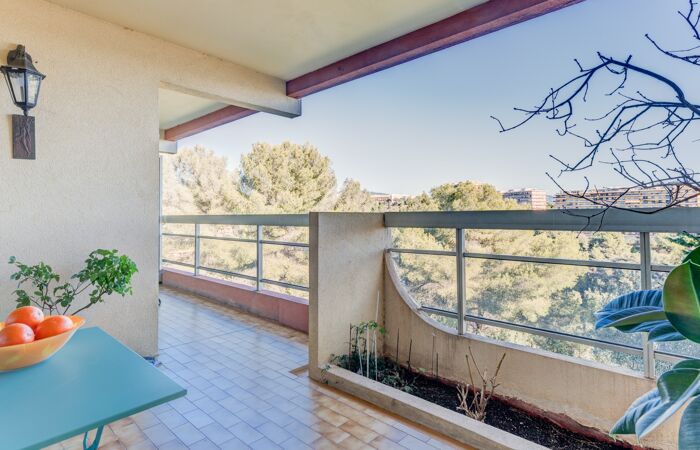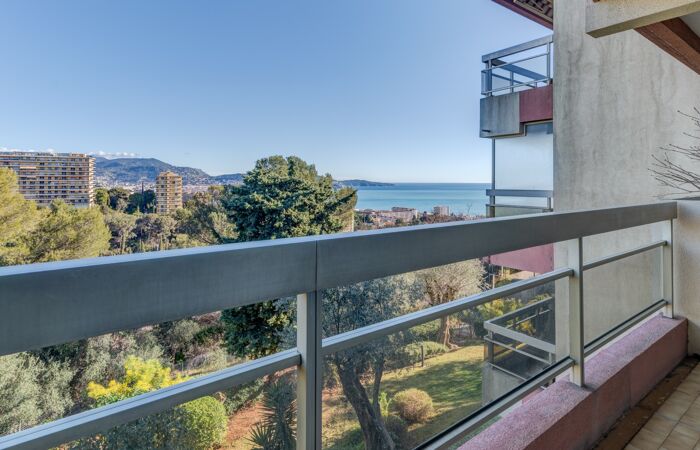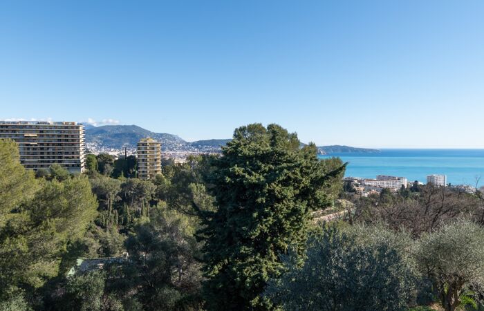 NICE - FABRON : au sein d'une copropriété de standing avec piscine et parc, découvrez cet appartement traversant est–ouest de 80 m², situé à l'avant-dernier étage avec vue mer.