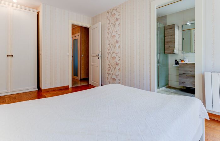 Il se compose d'un vaste séjour avec cuisine ouverte donnant sur une belle terrasse exposée EST avec vue mer latérale. Une chambre en suite avec salle de bain, une autre chambre en suite coté Ouest avec salle d'eau, et une troisième chambre ainsi qu'un WC indépendant. Une seconde terrasse côté ouest, au calme, surplombe le jardin de la copropriété. Vendu avec cave. Un bien lumineux et confortable, idéal pour profiter pleinement du cadre de vie niçois.