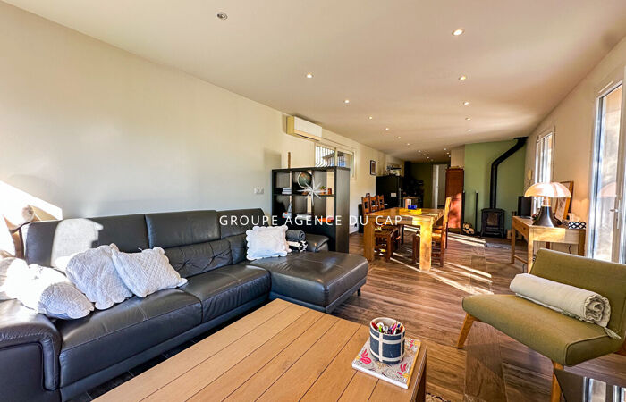 La maison se compose de plain-pied d'un espace de vie lumineux d'environ 40 m² ouvert sur les terrasses, de deux chambres dont une avec salle d'eau, d'une salle de bain, d'une buanderie et d'un WC. À l'étage, une chambre avec terrasse et aperçu mer.