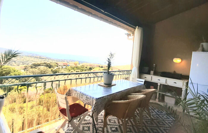 EXCLUSIVITE . Situé dans une résidence fermée et sécurisée avec Piscine, Appartement 2/3 en DERNIER ETAGE VUE MER composé : Séjour lumineux et Cuisine ouverte donnant sur une large loggia fermée, une chambre principale,1 Chambre coin nuit (lits superposés), 1 salle de Bains et 1 Salle d'eau.