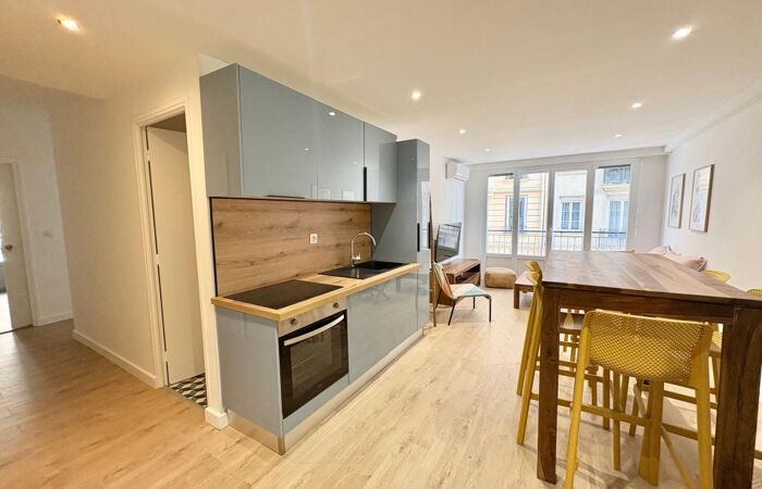 À deux pas du centre de Nice, rue Trachel, au 1er étage avec ascenseur, découvrez ce magnifique appartement 4 pièces de 70,34 m², entièrement refait à neuf, alliant confort, modernité et fonctionnalité. Il dispose de la climatisation dans toutes les pièces.
