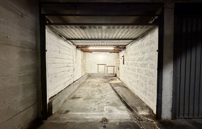 Au premier sous-sol d'une résidence de bon standing, GARAGE FERME avec rangement en mezzanine.