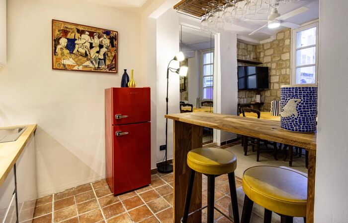 Vendu meublé, il offre une atmosphère chaleureuse et authentique.. À deux pas du tramway, des commerces et du Cours Saleya.