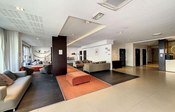 NICE REPUBLIQUE TNL, produit d'investissement locatif type LMNP dans résidence hôtelière de standing construite en 2010. Studio très bien agencé de 22,43m2 loi carrez + balcon au 5ème étage, en bon état, vue dégagée, avec exposition Ouest.