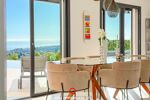 De larges baies vitrées prolongent naturellement cet espace vers les extérieurs et offrent une belle luminosité tout au long de la journée.