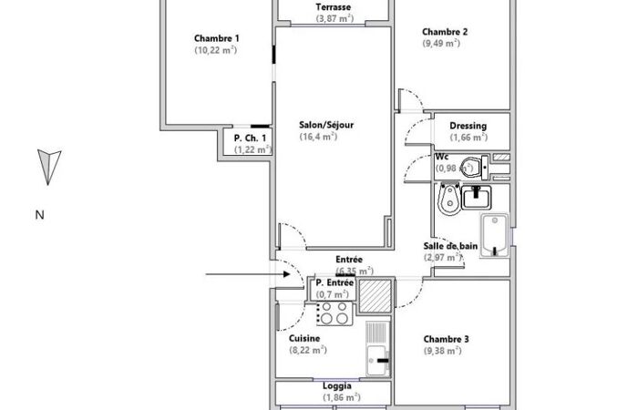 - Surface terrasse : 3.87 m²