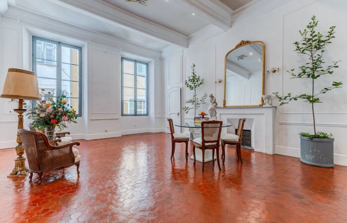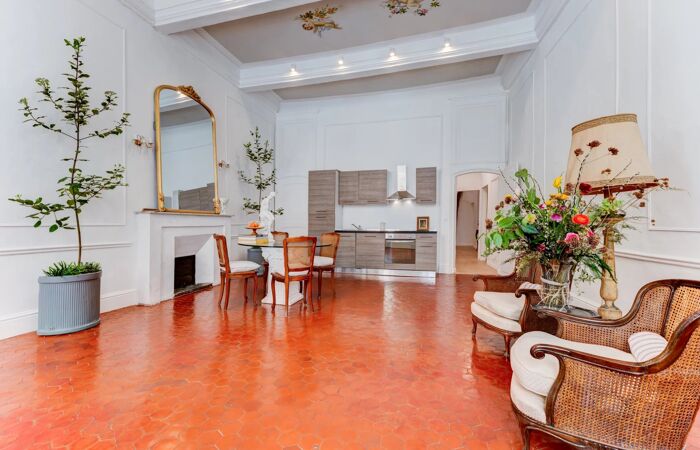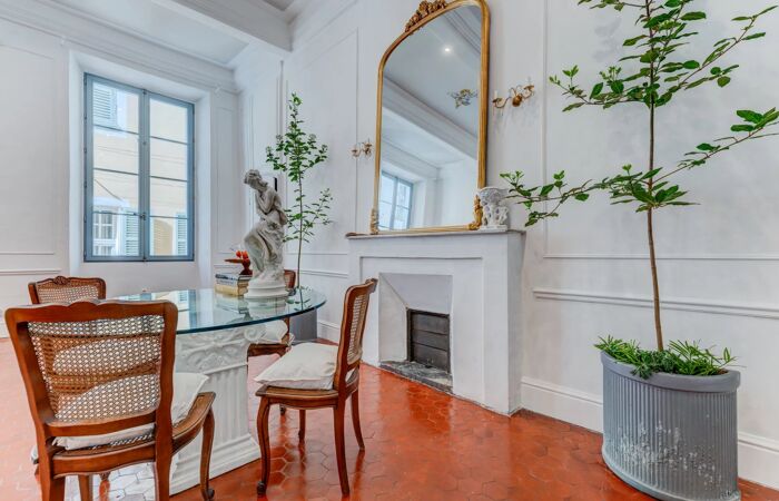 Vieux Nice - 3 pièces dans ancien Palais Vieux Nice : dans un ancien Palais du début du XVIII ème siècle, magnifique appartement d'angle de 3 pièces d'une surface de 83 m2 situé dans le coeur du Vieux Nice. L'appartement au charme authentique est composé d'une vaste entrée avec mezzanine, un magnifique séjour d'environ 40m2 avec de belles ouvertures, une hauteur de plafond de 4m, une cheminée et tommettes d'époque au sol, une cuisine US équipée, une chambre exposée Sud avec vue sur la cathédrale et le château, une seconde chambre, une salle de bain avec douche et WC, un second toilette indépendant et de nombreux rangements. Appartement très atypique avec beaucoup de cachet. Coup de coeur assuré! Les informations sur les risques auxquels ce bien est exposé sont disponibles sur le site Géorisques : georisques.gouv.fr Pour toutes demandes d'informations et visite, merci de contacter Laetitia GIACOMONI au +33662350211