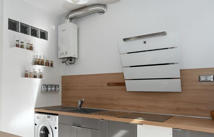 Ce bien se compose d'un grand salon exposé sud, d'une cuisine indépendante de deux chambres, et d'une salle de d'eau et WC.