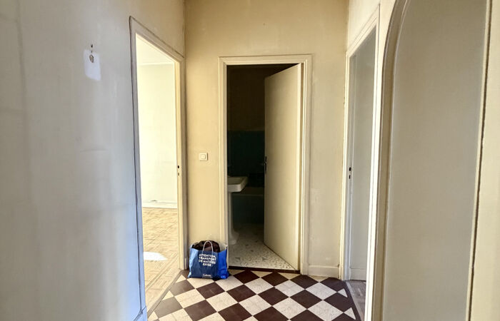 Au 2o étage d'un immeuble de standing avec gardien, grand F2 traversant à rénover entièrement.