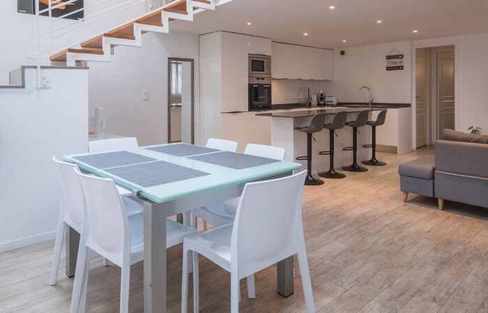 La maison en parfait état offre au rez-de-chaussée une cuisine aménagée et équipée ouverte sur le salon/salle à manger, une chambre de maître avec de salle de bains en suite et wc indépendant. A l'étage supérieur se trouve deux chambres, une salle d'eau, WC pour les invités et un coin bureau. Forte rentabilité locative.
