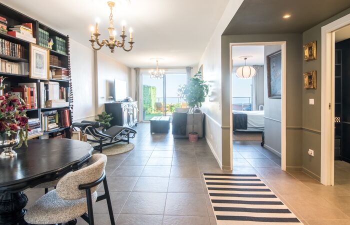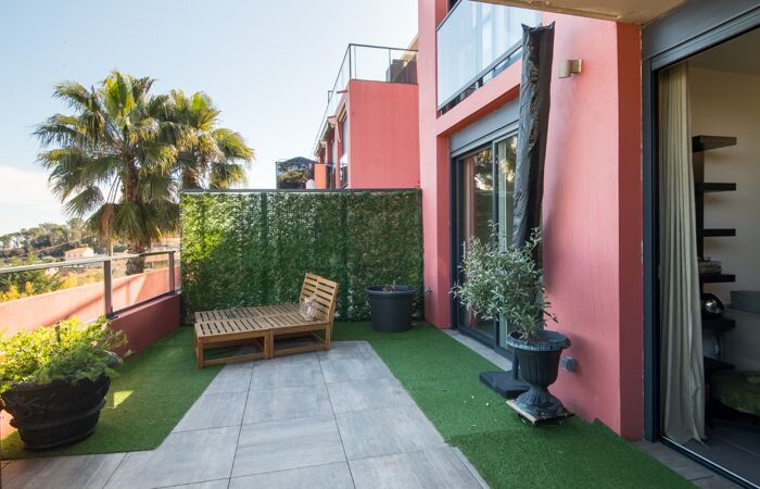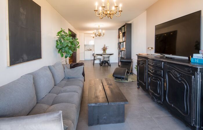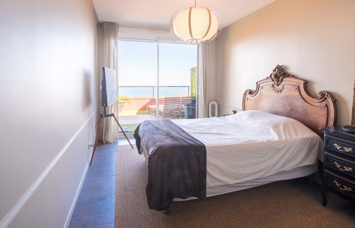 Il se compose d'une grande entrée avec rangements, d'une cuisine équipée, d'un spacieux séjour ouvrant sur une belle terrasse d'environ 25 m² exposée Est avec vue mer, ainsi que d'une chambre donnant également accès à la terrasse. Une salle d'eau contemporaine et un WC complètent ce bien.