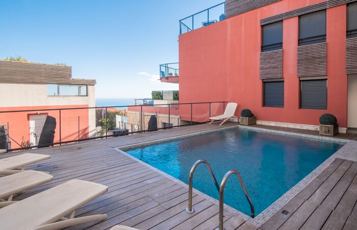 Superbe grand 2 pièces, La Turbie, avec terrasse vue mer – Résidence récente avec piscine.