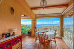 En rez-de-chaussée, vous découvrirez un agréable séjour avec salle à manger, une cuisine ouverte accompagnée de son arrière-cuisine, une chambre pouvant faire office de bureau, un WC indépendant, ainsi qu'une véranda prolongeant les espaces de vie vue mer. Vous pourrez profiter de moment de détente au bord de la piscine.
