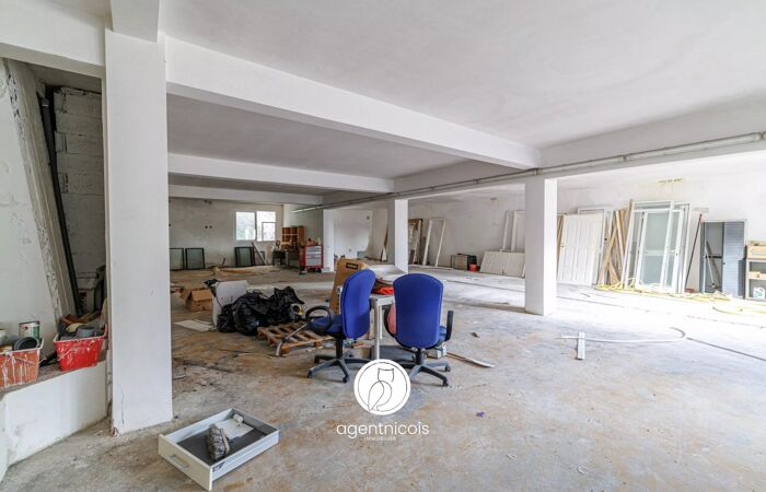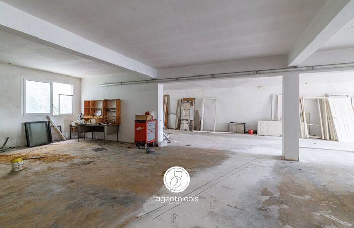 Élevé sur deux niveaux, cet ensemble immobilier développe 430,66 m² de plain-pied au rez-de-chaussée, offrant de vastes espaces ouverts aux volumes généreux, propices à de nombreux aménagements, ainsi qu’une salle d’eau avec WC.