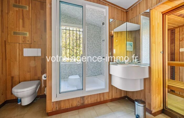 Nichée dans un écrin de verdure, cette magnifique villa de 276 m² (227m² habitable) dont un 2 pièces indépendant de 47 m², séduit par son cadre verdoyant, sa luminosité naturelle et ses volumes généreux.