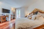 À l’étage, l’espace nuit comprend une suite parentale avec dressing et grande salle de bains avec baignoire balnéo, ainsi qu’une seconde chambre avec salle d’eau et dressing. Les deux chambres s’ouvrent sur une magnifique terrasse exposée Sud-Ouest avec vue dégagée.