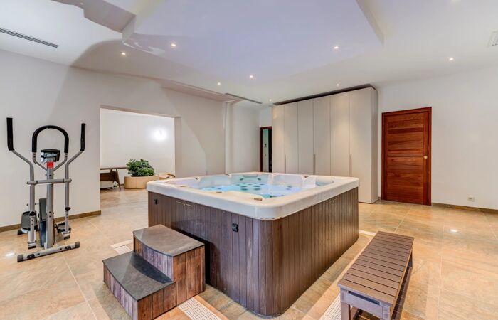 En rez-de-jardin, une quatrième chambre indépendante et plusieurs espaces annexes complètent la propriété, dont un espace bien-être comprenant :