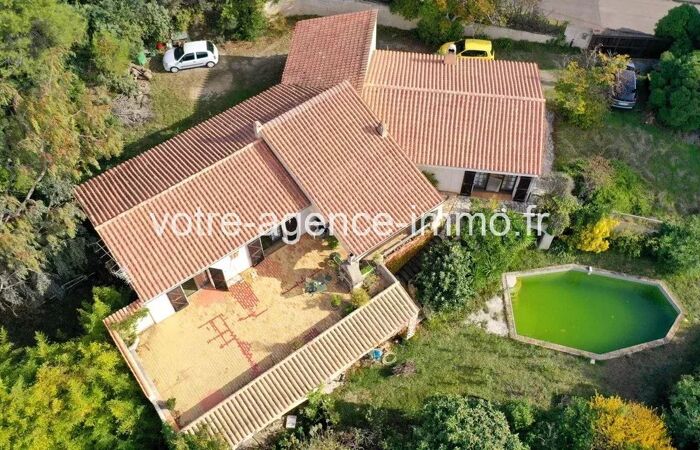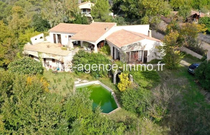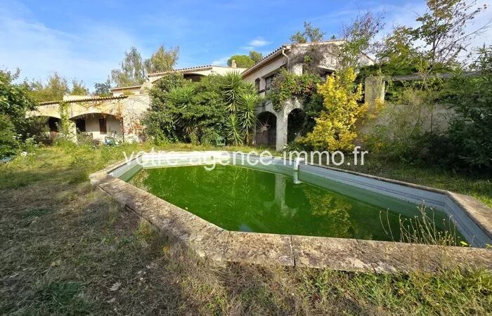 La Gaude Belle Maison Provençale de qualité à moderniser LA GAUDE : secteur résidentiel proche du village, dans un écrin de verdure, MAGNIFIQUE MAISON DE MAÇON de STYLE PROVENCALE avec PISCINE sur parcelle d'environ 12.000m² (zone NB / UF). Construction de qualité de 1978 en béton banché sur 2 niveaux comprenant 7 pièces pour 275m² de surface habitable à rénover. Terrasses (21 et 66m²) avec barbecue, garage de 61m² et un grand vide sanitaire attenant de 190m² utilisable à titre de caves ou d'atelier. CALME, sans vis-à-vis, LUMINEUSE, situation dominante avec jolie vue verdure, collines et mer.