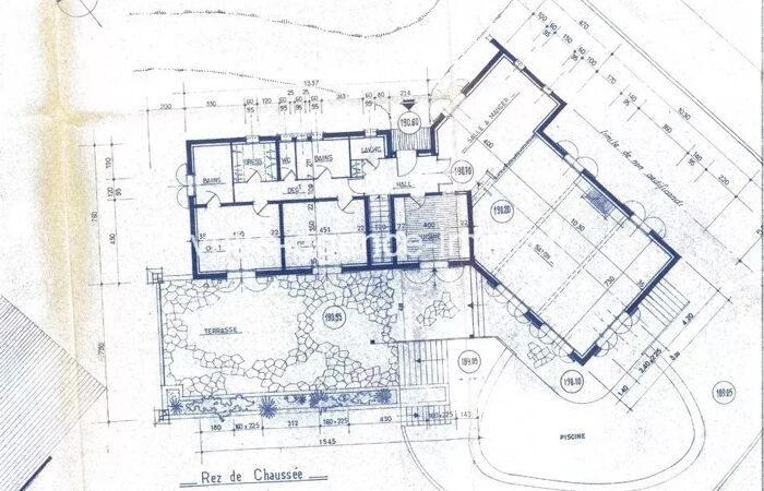 Elle se compose au niveau rez-de-chaussée d'une superficie d'environ 181m² à rénover, comprenant une entrée principale, un espace à vivre de plus de 100m² répartie entre un séjour de 72m² et un salon ouvert de 29m², une cuisine attenante (13,72m²), un wc séparé et un cellier. Un coin nuit donne accès à une salle de bains, une chambre (15,69m²) ainsi qu'une chambre parentale (15,67m²) comprenant un dressing (4,60m²) et une salle de bains avec wc. Les 2 terrasses (21 et 66m²) sont accessibles à ce niveau avec une exposition Sud-Ouest.
