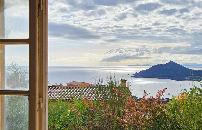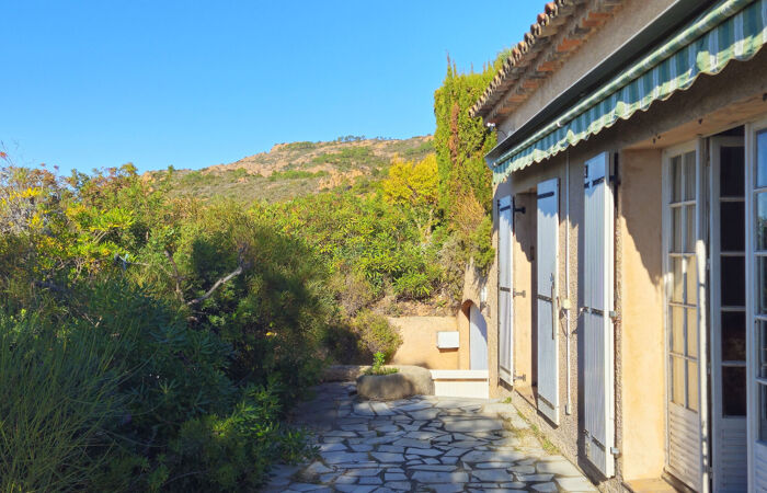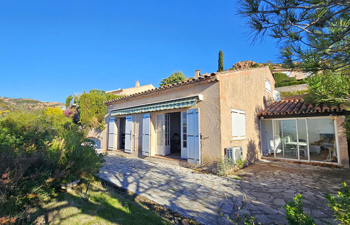 Située sur les hauteurs d'un domaine privé de standing à Agay, cette villa de 4 pièces profite d'une vue mer imprenable et d'un environnement calme et naturel en bordure d'Esterel. La maison se dote d'une superficie intérieur de 90m² environ, véranda incluse (78.5m² CARREZ) et d'un terrain de 440m². Idéalement placée la propriété offre un potentiel spectaculaire avec un paysage hors du commun. Au niveau principal on retrouve un séjour, une cuisine pouvant s'ouvrir sur le living, une petite buanderie, deux chambres, une salle de bains et un WC. Et au niveau supérieur une mezzanine aménagée en chambre pouvant accueillir une salle de douche avec WC. Les espaces extérieurs sont composés de belles terrasses bordant la villa et d'un jardin qui offre un lieu idéal pour l'implantation d'une piscine. La maison à rénover profite d'un grand garage de 32m² et d'un espace de parking.