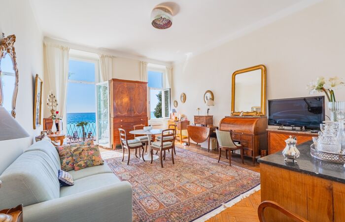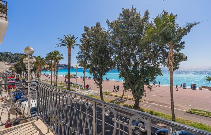 Dans un immeuble de standing sécurisé avec ascenseur, et situé au pied de la Promenade des Anglais, découvrez cet appartement 2 pièces de 58.15 m² avec deux balcons, dont un profond offrant une vue mer à couper le souffle.