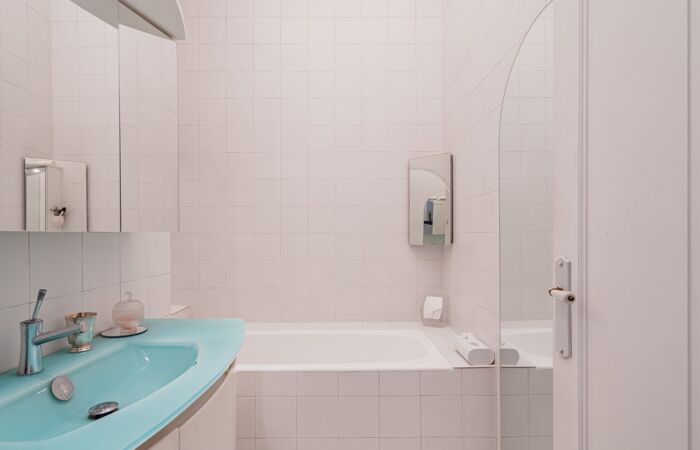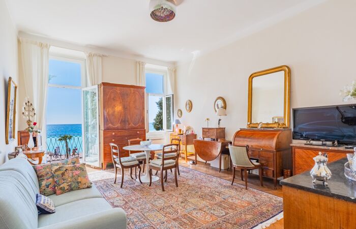 L'appartement se compose d'une entrée, d'un spacieux et lumineux séjour donnant sur le premier balcon avec une vue mer imprenable, d'une chambre donnant sur un deuxième balcon côté cour de l'immeuble, d'une cuisine indépendante, d'une salle de bain et de WC séparés.