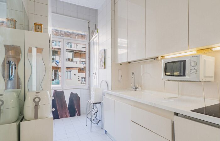 L'appartement dispose d'une très belle hauteur sous plafond, d'un système de climatisation et du double vitrage.