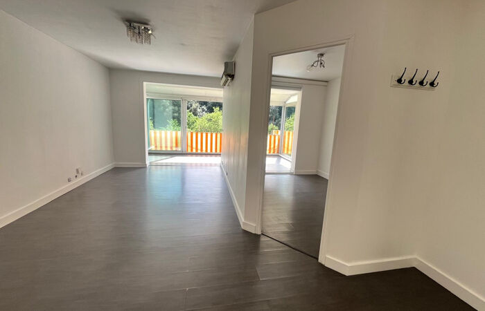 Appartement de 2 pièces principales de 45 m2 avec une véranda de 12 m2 et un balcon de 7 m2. Composé d'une entrée desservant une cuisine aménagée et équipée, un séjour avec placard, une chambre avec placards, une salle d'eau et un WC individuel. Climatisation. Cave. Garage.