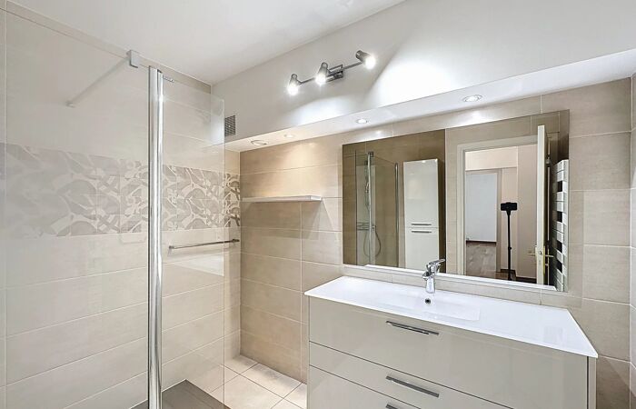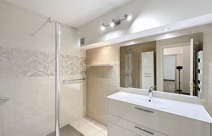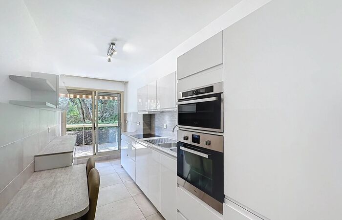NICE OUEST BOSQUETS Résidence sécurisée grand 2 pièces 64 m² avec terrasse sud de 26 m² avec vue dégagée verdure, séjour climatisé de 26 m² donnant sur terrasse, cuisine indépendante équipée, une salle d'eau, une chambre climatisé , hall d'entrée avec dressing, un toilette , excellente prestations intérieures, une cave et un parking en sous-sol à proximité immédiate du tram ainsi que de la mer et des commodités . Pour toutes demandes d'informations et visite, merci de contacter Philippe ZERBIB au +33611514271