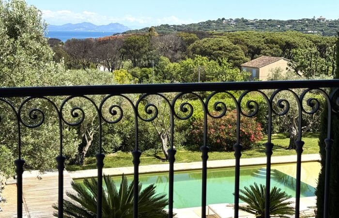 Située dans une voie privée au calme, avec une vue mer imprenable, cette propriété incarne l'élégance et l'art de vivre tropézien.