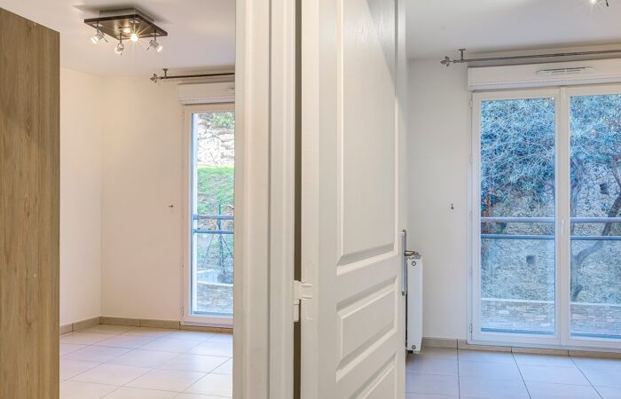Nice ouest, secteur Corniche Fleurie, au sein d'une résidence récente (2012), fermée et sécurisée de très bon standing, nous vous proposons cet appartement 3 pièces d'environ 55 m², au calme et sans vis-à-vis, composé d'une entrée, d'un séjour avec cuisine équipée s'ouvrant sur une profonde terrasse de 12 m² exposée sud-ouest, offrant une très belle vue mer, verdure et montagne.