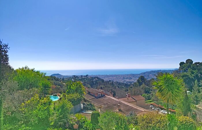NICE-GAIRAUT MAISON VUE PANORAMIQUE TERRASSES JARDIN GARAGE Située sur les hauteurs très recherchées de Gairaut, cette élégante villa contemporaine d’environ 213 m² habitables offre un cadre de vie privilégié, alliant calme, luminosité et panorama exceptionnel sur la mer et la ville de Nice. Construite en 2004, la maison se déploie sur deux niveaux et propose des volumes généreux ainsi qu’une distribution harmonieuse.