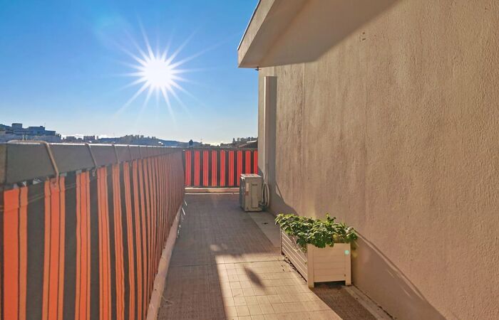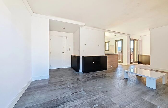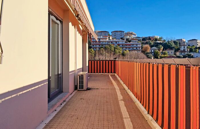 NICE-ST SYLVESTRE/JEAN BEHRA 3 PIECES TERRASSE PARKING Situé au début du boulevard Jean Behra, venez découvrir en exclusivité cet appartement de 3 pièces de 75 m² en dernier étage avec ascenseur qui offre un cadre de vie lumineux et calme. Bénéficiant d’une triple exposition Est, Sud et Ouest, il est entouré d’une vaste terrasse de 60 m² faisant le tour complet de l’appartement.