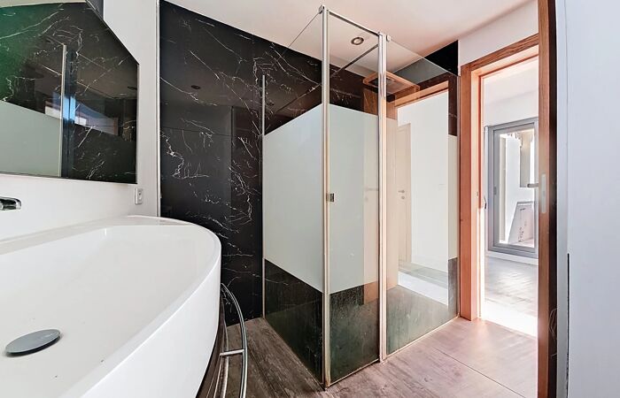 À rafraîchir, ce bien séduit par sa belle luminosité, son calme, sa climatisation et ses fenêtres en double vitrage. Toutes les pièces s’ouvrent sur la terrasse.