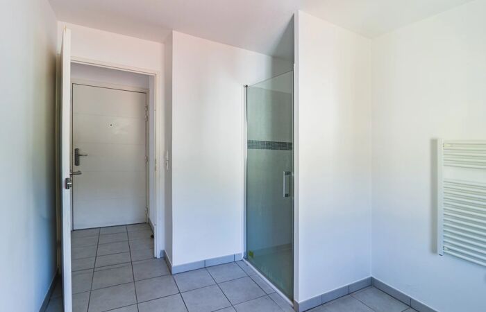 Commerces à proximité immédiate. Bus ligne 8+ au pied de l'immeuble (centre-ville en 15 minutes), tramway Comte de Falicon à 10 minutes à pied.