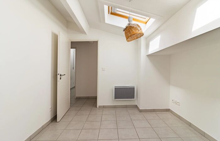 Prestations : climatisation, double vitrage, fibre optique, ascenseur, vidéosurveillance, accès PMR. Place de parking intérieure incluse dans le prix, avec espace de rangement sous pente supplémentaire.