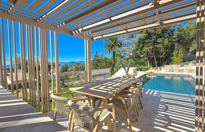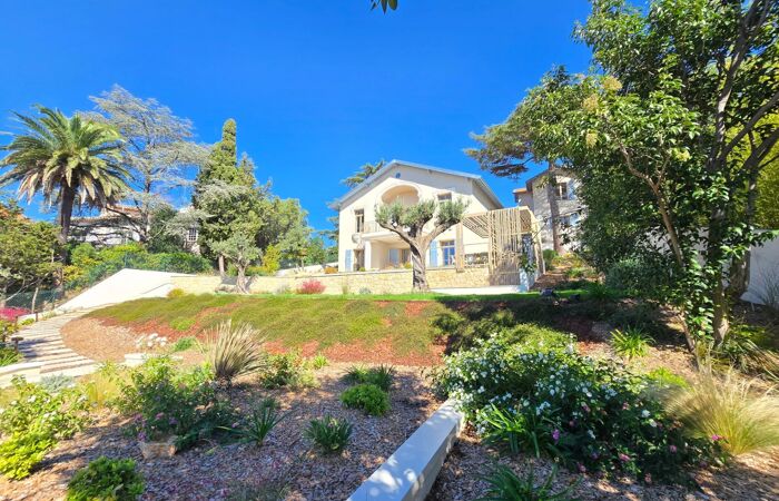 Vous apprécierez tout particulièrement les accès possibles par les deux rues, le double garage, le jardin de style Méditerranéen de 1200m2 enveloppant la maison d’un écrin végétal qui fleurira maturera au fil des saisons, le tout au calme parfait. La piscine, avec son élégant pool house aménagé et son espace rangement/sanitaires, invite à la quiétude sous le ciel azuréen, comme suspendus entre terre et mer.