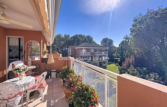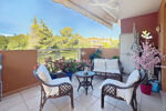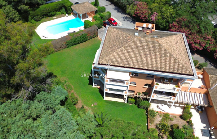Situé dans une petite résidence intimiste à proximité des commerces et des golfs à pieds, bel appartement confortable de type 4 pièces en dernier étage et exposé sud et sud ouest. Cet appartement comprend une entrée avec rangement, un séjour avec plafond cathédral et coin cuisine, le tout sortant sur une belle terrasse en partie protégée avec jolie vue sur la nature, 2 chambres avec chacune une salle d'eau. Vous retrouverez une mezzanine avec point d'eau et WC pouvant devenir une 3eme chambre ou rester un bureau ou autre. L'appartement est entièrement climatisé et profite d'une cave et d'un garage en sous sol. Places de parking libre dans la résidence. Piscine avec sanitaire de piscine.
