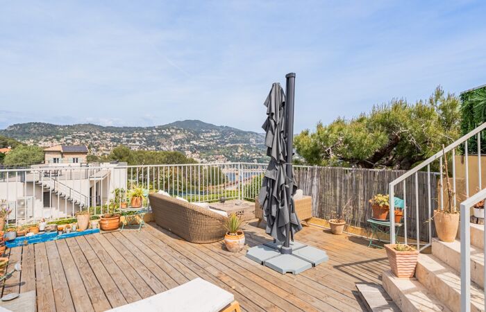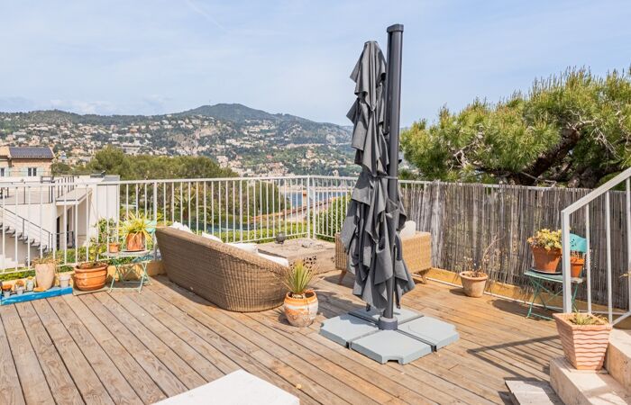 Ce séduisant duplex avec deux terrasses d'une surface de 32 m² offre une vue imprenable vue mer sur la rade de Villefranche à seulement 10 minute du Port de Nice.